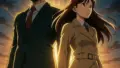『東島丹三郎は仮面ライダーになりたい』特集アイキャッチ画像|アニメ風の東島丹三郎が背中で立ち、背後に声優・小西克幸を象徴する人物のシルエット。アフレコマイクの前に差し込む光が二人を包み、現実とフィクションが交錯する“魂の瞬間”を描いたビジュアル。 日常・コメディ