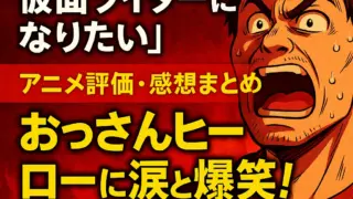 日常・コメディ 『東島丹三郎は仮面ライダーになりたい』アニメ評価・感想まとめ|おっさんヒーローに涙と爆笑!【魂燃焼レビュー🔥】